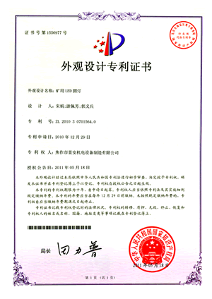 礦用LED圓燈專利證書