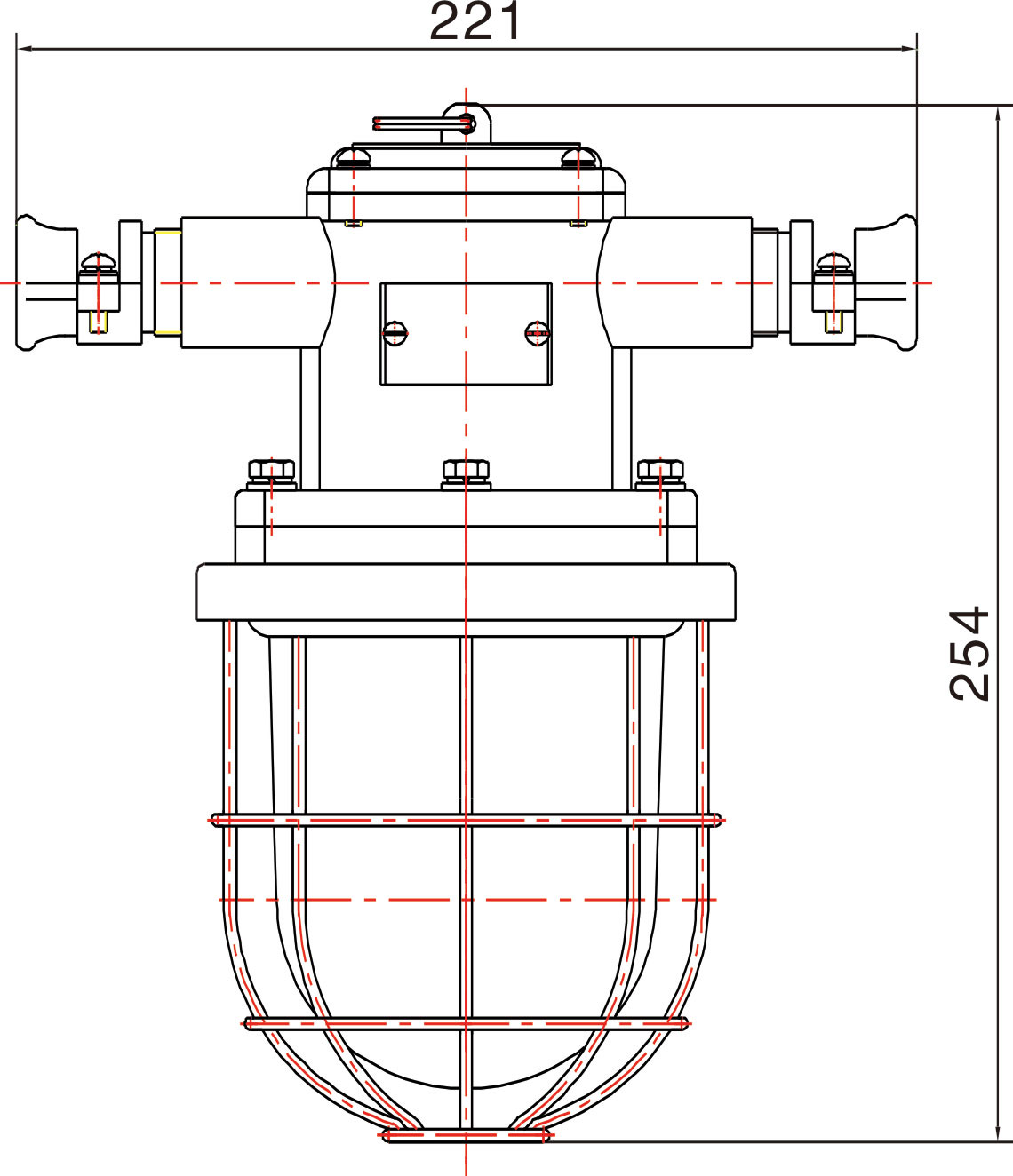 13W熒光燈由上蓋、上殼體、下殼體、防爆透明玻璃罩、金屬保護(hù)網(wǎng)等組成,上蓋與上殼體用M4螺釘連接,下殼體用M6螺釘與上殼體相連。防爆透明玻璃罩、護(hù)罩用M4螺釘固定在下殼體上。上殼體外有M4外接地螺釘、銘牌等,上殼體內(nèi)有接線板、M4內(nèi)接地螺釘、直口式壓接燈頭。下殼內(nèi)有密封墊、防爆透明玻璃罩及金屬保護(hù)網(wǎng),燈頭與電源采用直口式壓接方式。上蓋、上殼體、下殼體、防爆透明玻璃罩之間均有符合規(guī)定的隔爆接合面隔爆。 |